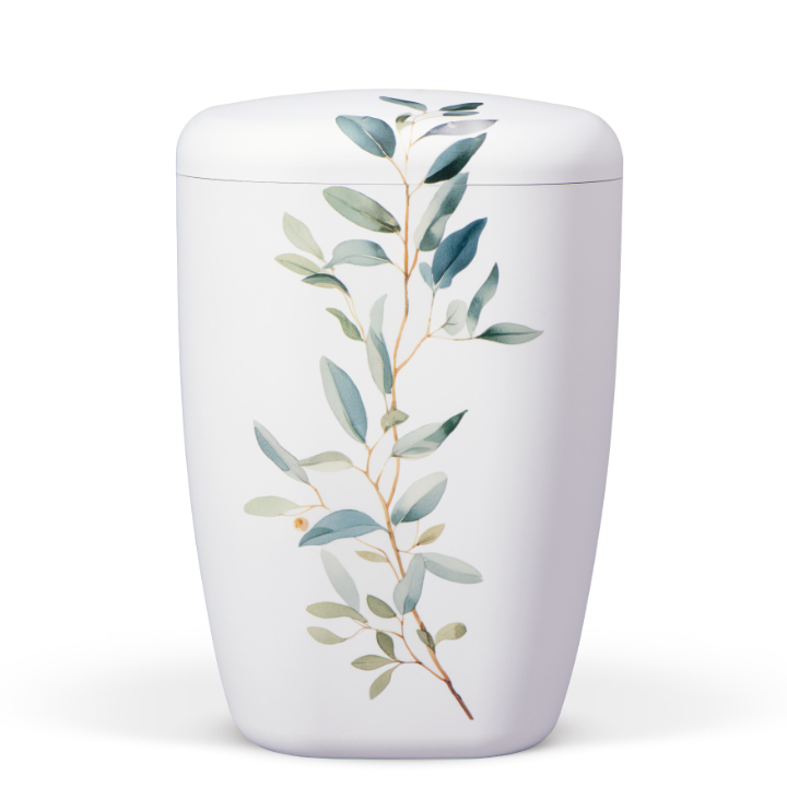 Naturstoffurne Weiß Matt, Dekor: Olivenzweig