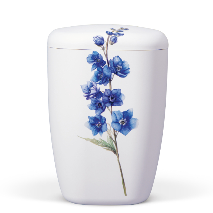 Naturstoffurne Weiß Matt, Dekor: Rittersporn