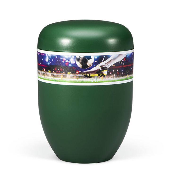 Naturstoffurne, Kieferngrün, Dekor "Fußball"