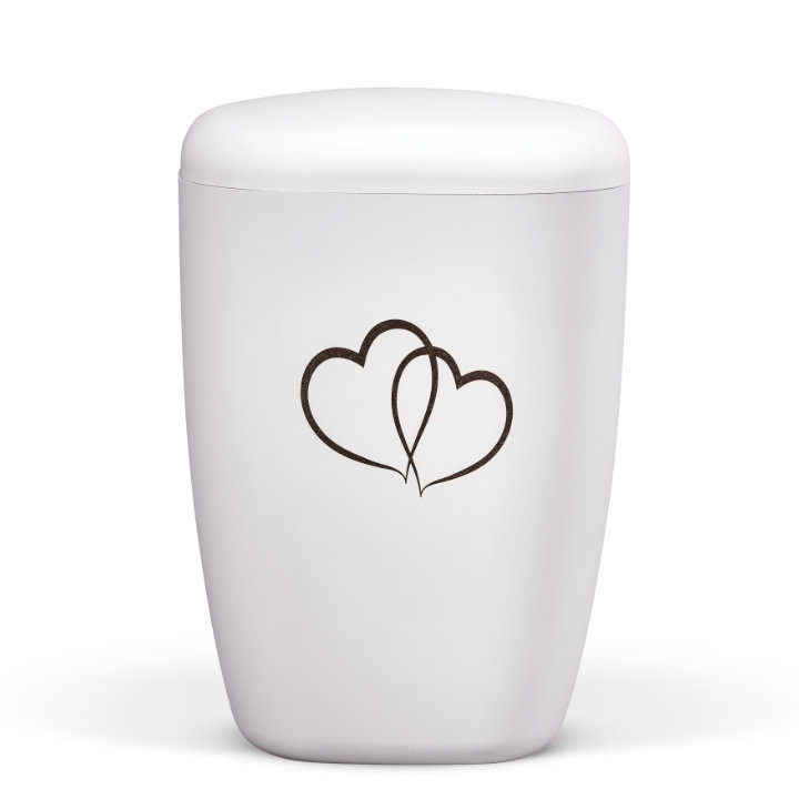 Naturstoffurne, Weiß-Matt, Lasergravur, Doppelherz